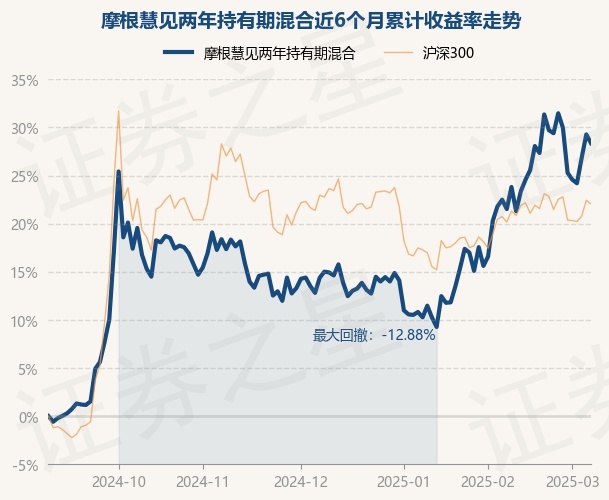 证券之星消息,3月6日,摩根慧见两年持有期混合最新单位净值为0.8232元,累计净值为0.8232元,较前一交易日上涨1.94%。历史数据显示该基金近1个月上涨7.47%,近3个月上涨13.01%,近6个月上涨29.27%,近1年上涨21.72%。该基金近6个月的累计收益率走势如下图: