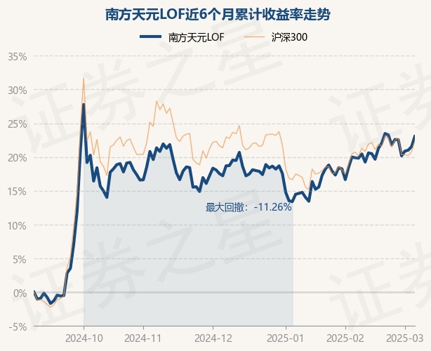 证券之星消息,3月6日,南方天元LOF最新单位净值为3.3689元,累计净值为3.3689元,较前一交易日上涨1.26%。历史数据显示该基金近1个月上涨3.85%,近3个月上涨3.67%,近6个月上涨23.05%,近1年上涨14.47%。该基金近6个月的累计收益率走势如下图: