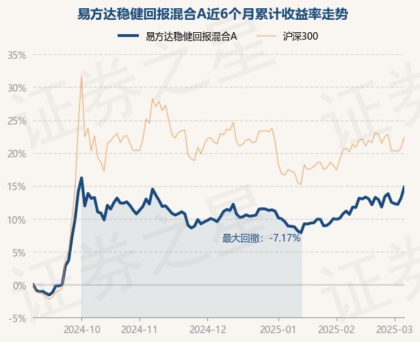 证券之星消息,3月6日,易方达稳健回报混合A最新单位净值为0.8926元,累计净值为0.8926元,较前一交易日上涨1.49%。历史数据显示该基金近1个月上涨4.31%,近3个月上涨4.12%,近6个月上涨14.82%,近1年上涨12.52%。该基金近6个月的累计收益率走势如下图: