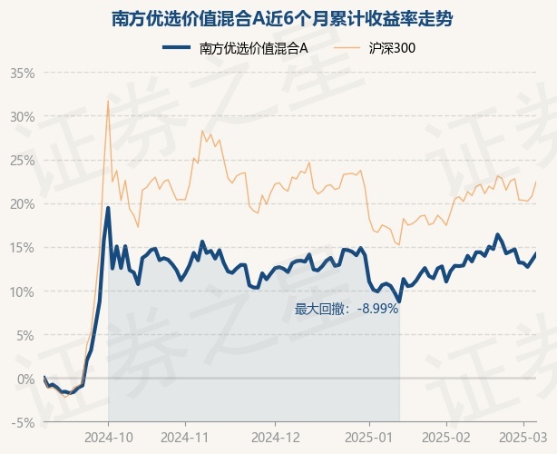 证券之星消息,3月6日,南方优选价值混合A最新单位净值为0.9008元,累计净值为3.4338元,较前一交易日上涨0.65%。历史数据显示该基金近1个月上涨1.73%,近3个月上涨0.92%,近6个月上涨14.16%,近1年上涨9.06%。该基金近6个月的累计收益率走势如下图: