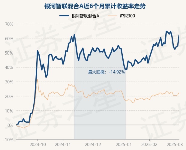证券之星消息,3月6日,银河智联混合A最新单位净值为3.092元,累计净值为3.092元,较前一交易日上涨4.71%。历史数据显示该基金近1个月上涨8.42%,近3个月上涨5.89%,近6个月上涨61.97%,近1年上涨20.88%。该基金近6个月的累计收益率走势如下图: