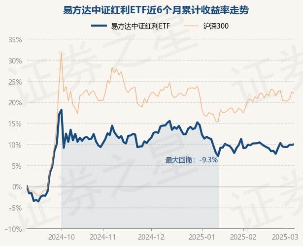 证券之星消息,3月6日,易方达中证红利ETF最新单位净值为1.3216元,累计净值为1.5926元,较前一交易日下跌0.02%。历史数据显示该基金近1个月上涨0.63%,近3个月下跌3.86%,近6个月上涨9.8%,近1年上涨2.74%。该基金近6个月的累计收益率走势如下图:
