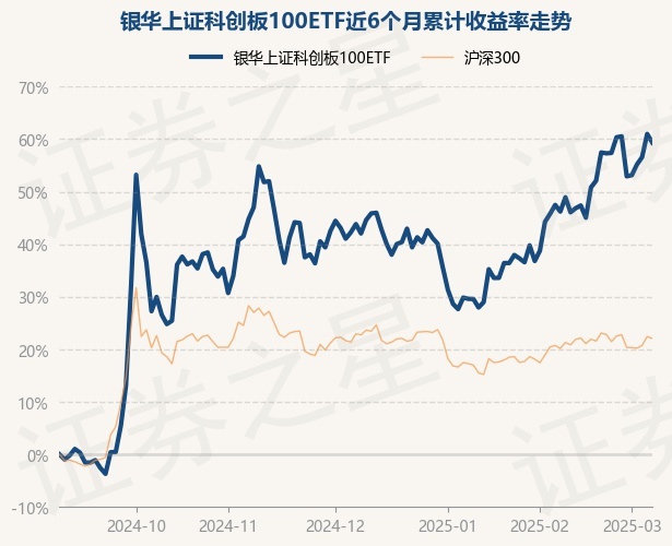 证券之星消息,3月6日,银华上证科创板100ETF最新单位净值为1.0593元,累计净值为1.0593元,较前一交易日上涨2.82%。历史数据显示该基金近1个月上涨11.6%,近3个月上涨11.93%,近6个月上涨60.99%,近1年上涨27.72%。该基金近6个月的累计收益率走势如下图: