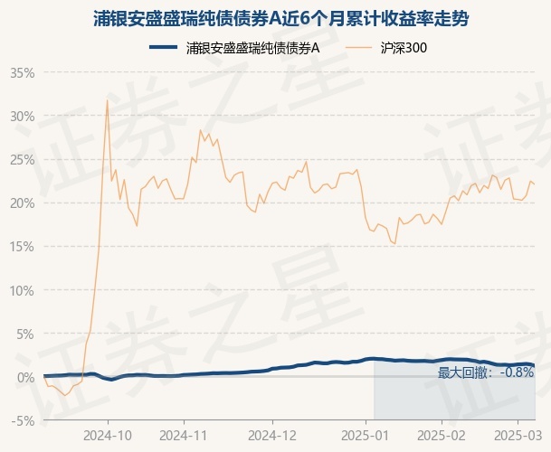 证券之星消息,3月6日,浦银安盛盛瑞纯债债券A最新单位净值为1.0573元,累计净值为1.1063元,较前一交易日下跌0.06%。历史数据显示该基金近1个月下跌0.56%,近3个月上涨0.34%,近6个月上涨1.36%,近1年上涨3.31%。该基金近6个月的累计收益率走势如下图: