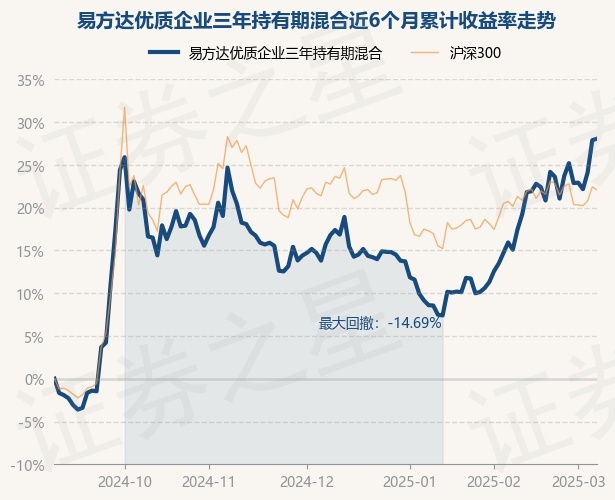 证券之星消息,3月7日,易方达优质企业三年持有期混合最新单位净值为0.9759元,累计净值为0.9759元,较前一交易日上涨0.13%。历史数据显示该基金近1个月上涨11.65%,近3个月上涨10.66%,近6个月上涨28.05%,近1年上涨20.69%。该基金近6个月的累计收益率走势如下图: