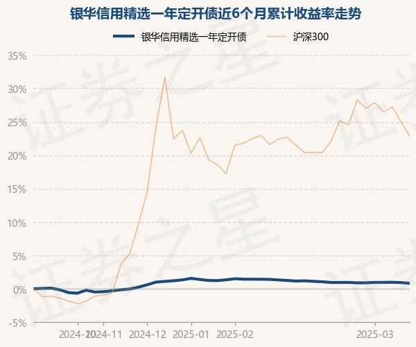 证券之星消息,3月7日,银华信用精选一年定开债最新单位净值为1.0673元,累计净值为1.2723元,较前一交易日下跌0.12%。历史数据显示该基金近1个月下跌0.68%,近3个月上涨2.09%,近6个月上涨0.81%,近1年上涨2.73%。该基金近6个月的累计收益率走势如下图: