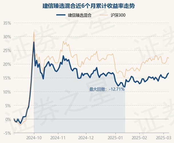 证券之星消息,3月7日,建信臻选混合最新单位净值为0.8434元,累计净值为0.8434元,较前一交易日上涨0.31%。历史数据显示该基金近1个月上涨1.82%,近3个月上涨0.32%,近6个月上涨16.67%,近1年上涨13.57%。该基金近6个月的累计收益率走势如下图:
