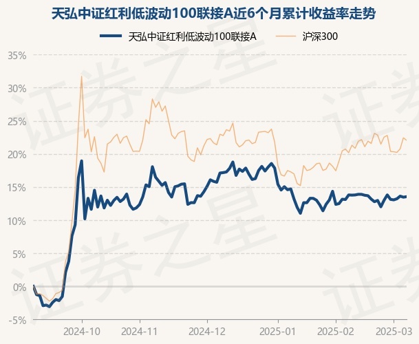 证券之星消息,3月7日,天弘中证红利低波动100联接A最新单位净值为1.6498元,累计净值为1.6498元,较前一交易日上涨0.07%。历史数据显示该基金近1个月上涨0.34%,近3个月下跌3.05%,近6个月上涨13.54%,近1年上涨6.94%。该基金近6个月的累计收益率走势如下图: