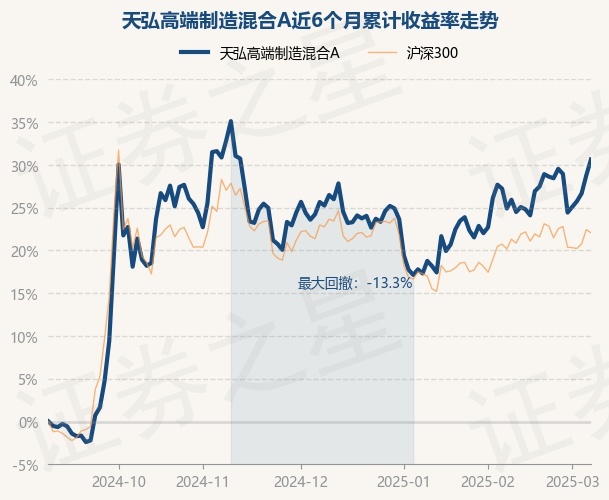 证券之星消息,3月7日,天弘高端制造混合A最新单位净值为0.8462元,累计净值为0.8462元,较前一交易日上涨1.44%。历史数据显示该基金近1个月上涨2.31%,近3个月上涨3.96%,近6个月上涨30.63%,近1年上涨26.47%。该基金近6个月的累计收益率走势如下图: