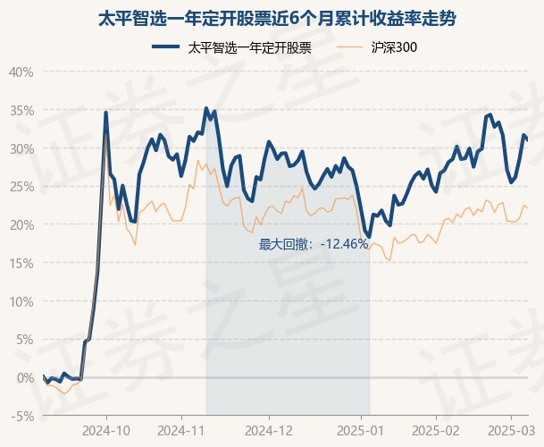 证券之星消息,3月7日,太平智选一年定开股票最新单位净值为0.858元,累计净值为0.958元,较前一交易日下跌0.46%。历史数据显示该基金近1个月上涨3.17%,近3个月上涨1.37%,近6个月上涨31.01%,近1年上涨17.31%。该基金近6个月的累计收益率走势如下图: