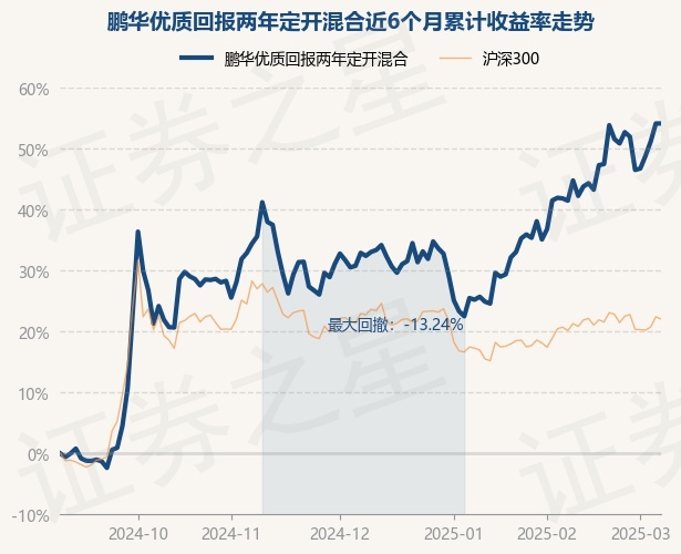 证券之星消息,3月7日,鹏华优质回报两年定开混合最新单位净值为1.2248元,累计净值为1.2248元,较前一交易日上涨0.0%。历史数据显示该基金近1个月上涨7.7%,近3个月上涨15.03%,近6个月上涨52.89%,近1年上涨42.83%。该基金近6个月的累计收益率走势如下图: