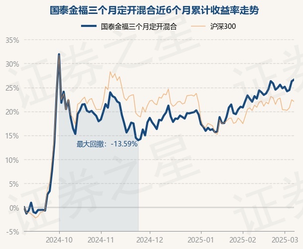 证券之星消息,3月7日,国泰金福三个月定开混合最新单位净值为0.7647元,累计净值为0.7647元,较前一交易日上涨0.28%。历史数据显示该基金近1个月上涨2.67%,近3个月上涨7.1%,近6个月上涨26.63%,近1年上涨15.72%。该基金近6个月的累计收益率走势如下图: