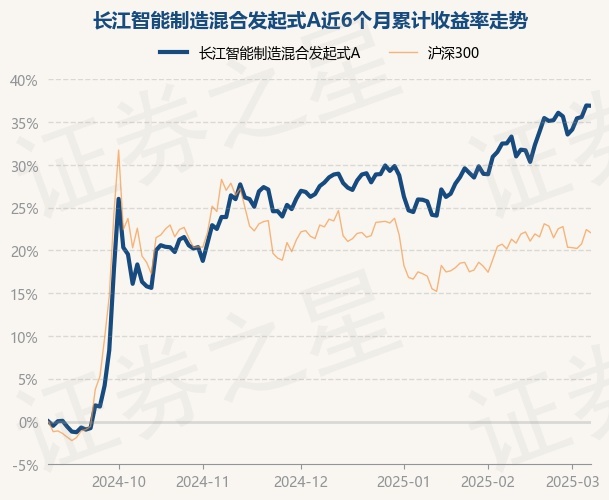 证券之星消息,3月7日,长江智能制造混合发起式A最新单位净值为1.2027元,累计净值为1.2027元,较前一交易日下跌0.02%。历史数据显示该基金近1个月上涨4.1%,近3个月上涨7.36%,近6个月上涨36.9%,近1年上涨30.74%。该基金近6个月的累计收益率走势如下图:
