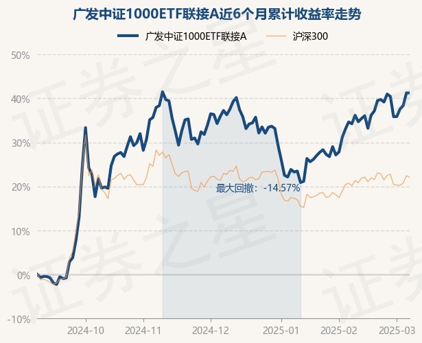 证券之星消息,3月7日,广发中证1000ETF联接A最新单位净值为1.3663元,累计净值为1.3663元,较前一交易日上涨0.0%。历史数据显示该基金近1个月上涨5.7%,近3个月上涨2.46%,近6个月上涨40.64%,近1年上涨22.82%。该基金近6个月的累计收益率走势如下图: