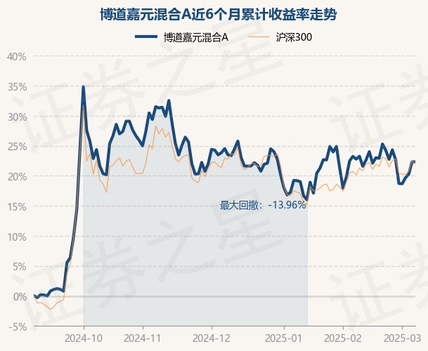 证券之星消息,3月7日,博道嘉元混合A最新单位净值为1.3817元,累计净值为1.3817元,较前一交易日上涨0.0%。历史数据显示该基金近1个月下跌0.73%,近3个月下跌2.36%,近6个月上涨21.59%,近1年上涨7.51%。该基金近6个月的累计收益率走势如下图: