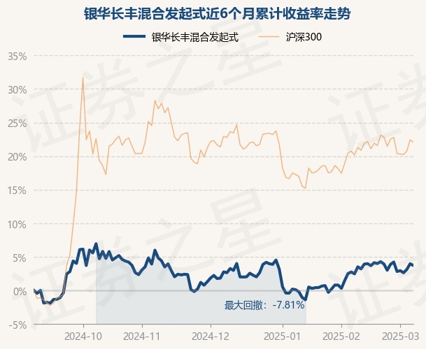 证券之星消息,3月7日,银华长丰混合发起式最新单位净值为1.4348元,累计净值为1.4348元,较前一交易日下跌0.24%。历史数据显示该基金近1个月上涨1.18%,近3个月上涨0.93%,近6个月上涨3.72%,近1年上涨8.96%。该基金近6个月的累计收益率走势如下图: