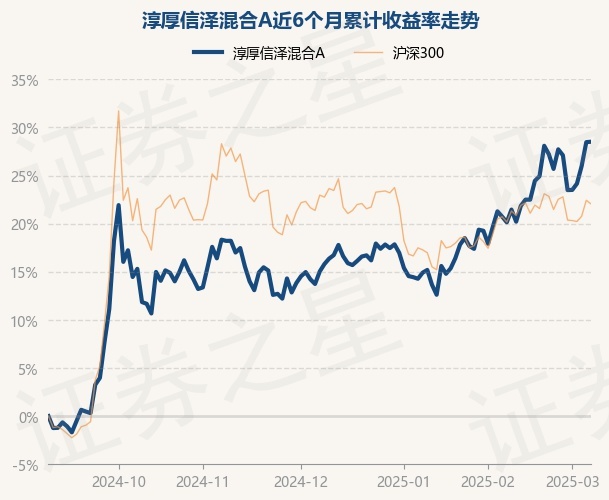 证券之星消息,3月7日,淳厚信泽混合A最新单位净值为2.0246元,累计净值为2.0246元,较前一交易日上涨0.03%。历史数据显示该基金近1个月上涨5.97%,近3个月上涨11.73%,近6个月上涨28.51%,近1年上涨29.08%。该基金近6个月的累计收益率走势如下图: