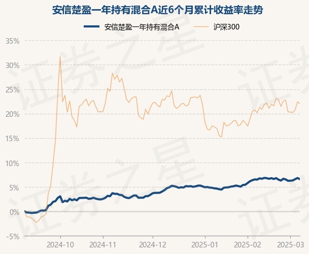 证券之星消息,3月7日,安信楚盈一年持有混合A最新单位净值为1.0346元,累计净值为1.0346元,较前一交易日下跌0.21%。历史数据显示该基金近1个月上涨0.2%,近3个月上涨2.43%,近6个月上涨6.6%,近1年上涨7.01%。该基金近6个月的累计收益率走势如下图: