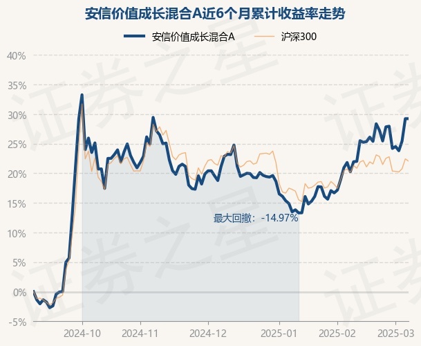 证券之星消息,3月7日,安信价值成长混合A最新单位净值为1.6899元,累计净值为1.6899元,较前一交易日上涨0.0%。历史数据显示该基金近1个月上涨6.9%,近3个月上涨6.74%,近6个月上涨29.29%,近1年上涨22.09%。该基金近6个月的累计收益率走势如下图: