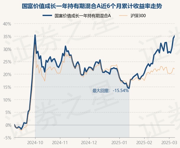 证券之星消息,3月7日,国富价值成长一年持有期混合A最新单位净值为0.9524元,累计净值为1.0978元,较前一交易日上涨0.71%。历史数据显示该基金近1个月上涨9.67%,近3个月上涨9.41%,近6个月上涨35.11%,近1年上涨27.51%。该基金近6个月的累计收益率走势如下图: