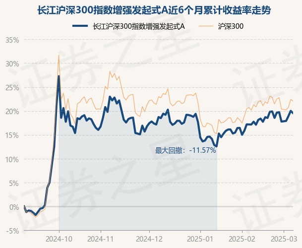 证券之星消息,3月7日,长江沪深300指数增强发起式A最新单位净值为0.8104元,累计净值为0.8104元,较前一交易日下跌0.39%。历史数据显示该基金近1个月上涨2.01%,近3个月上涨0.7%,近6个月上涨19.55%,近1年上涨12.9%。该基金近6个月的累计收益率走势如下图: