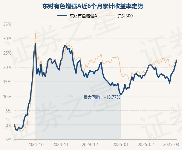 证券之星消息,3月7日,东财有色增强A最新单位净值为1.2789元,累计净值为1.2789元,较前一交易日上涨1.4%。历史数据显示该基金近1个月上涨1.63%,近3个月上涨3.02%,近6个月上涨22.36%,近1年上涨12.39%。该基金近6个月的累计收益率走势如下图: