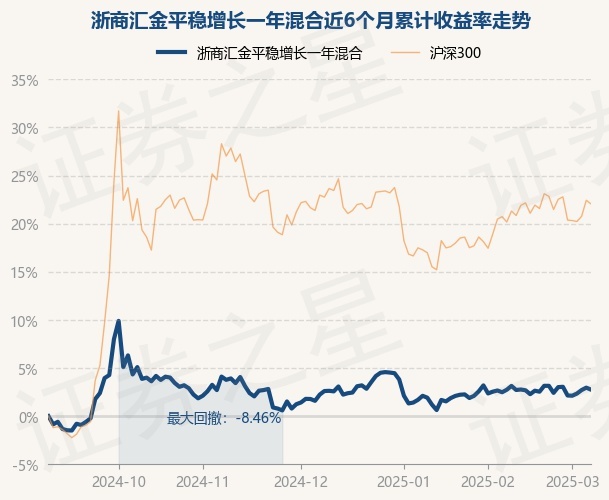 证券之星消息,3月7日,浙商汇金平稳增长一年混合最新单位净值为0.9096元,累计净值为2.4354元,较前一交易日下跌0.2%。历史数据显示该基金近1个月上涨0.09%,近3个月上涨0.51%,近6个月上涨2.76%,近1年上涨0.55%。该基金近6个月的累计收益率走势如下图: