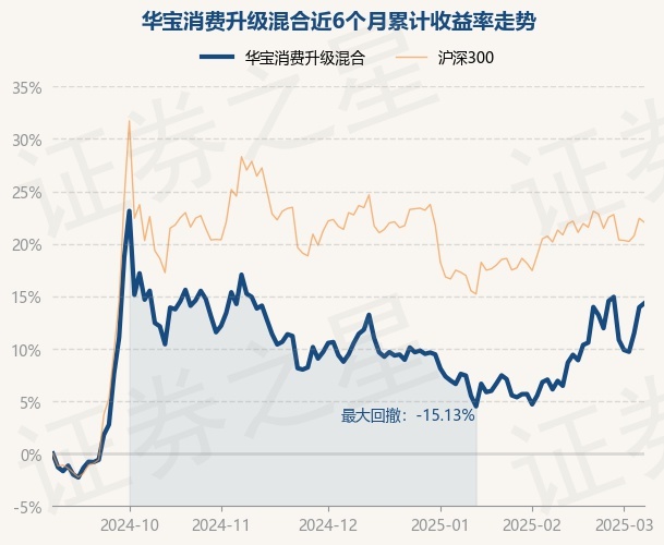 证券之星消息,3月7日,华宝消费升级混合最新单位净值为1.0473元,累计净值为1.0473元,较前一交易日上涨0.34%。历史数据显示该基金近1个月上涨7.04%,近3个月上涨4.46%,近6个月上涨14.33%,近1年下跌0.3%。该基金近6个月的累计收益率走势如下图: