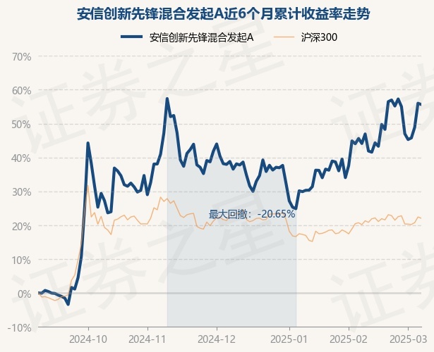 证券之星消息,3月7日,安信创新先锋混合发起A最新单位净值为0.6876元,累计净值为0.6876元,较前一交易日下跌0.23%。历史数据显示该基金近1个月上涨8.05%,近3个月上涨12.11%,近6个月上涨55.64%,近1年上涨39.61%。该基金近6个月的累计收益率走势如下图: