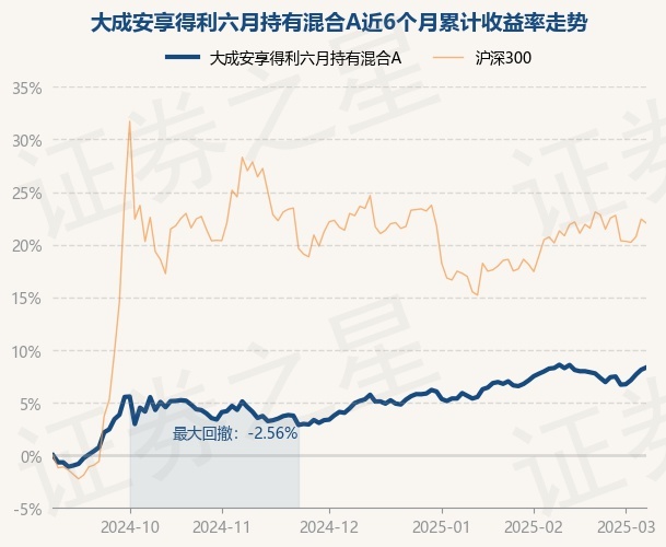 证券之星消息,3月7日,大成安享得利六月持有混合A最新单位净值为1.0953元,累计净值为1.0953元,较前一交易日上涨0.2%。历史数据显示该基金近1个月上涨0.35%,近3个月上涨3.72%,近6个月上涨8.34%,近1年上涨6.96%。该基金近6个月的累计收益率走势如下图: