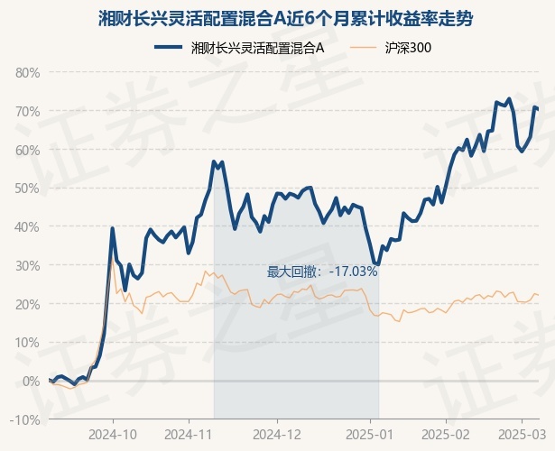 证券之星消息,3月7日,湘财长兴灵活配置混合A最新单位净值为0.9197元,累计净值为0.9197元,较前一交易日下跌0.33%。历史数据显示该基金近1个月上涨7.42%,近3个月上涨15.02%,近6个月上涨70.22%,近1年上涨42.28%。该基金近6个月的累计收益率走势如下图: