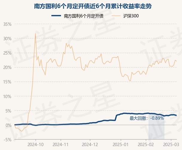 证券之星消息,3月7日,南方国利6个月定开债最新单位净值为1.0546元,累计净值为1.2243元,较前一交易日下跌0.14%。历史数据显示该基金近1个月下跌0.74%,近3个月上涨2.49%,近6个月上涨3.25%,近1年上涨5.5%。该基金近6个月的累计收益率走势如下图:
