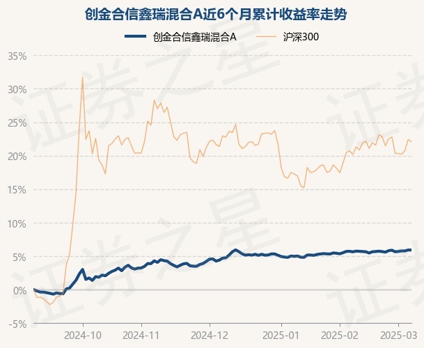 证券之星消息,3月7日,创金合信鑫瑞混合A最新单位净值为1.0884元,累计净值为1.0884元,较前一交易日上涨0.0%。历史数据显示该基金近1个月上涨0.19%,近3个月上涨1.16%,近6个月上涨5.92%,近1年上涨4.41%。该基金近6个月的累计收益率走势如下图: