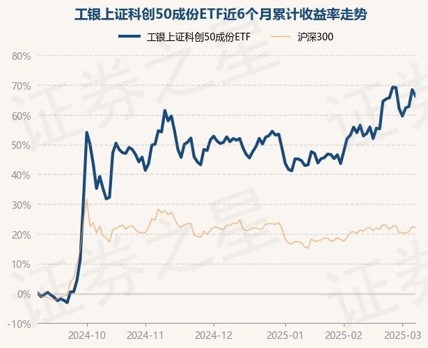 证券之星消息,3月7日,工银上证科创50成份ETF最新单位净值为1.1381元,累计净值为0.7931元,较前一交易日下跌1.24%。历史数据显示该基金近1个月上涨8.62%,近3个月上涨9.02%,近6个月上涨66.34%,近1年上涨39.05%。该基金近6个月的累计收益率走势如下图: