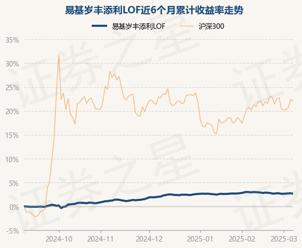 证券之星消息,3月7日,易基岁丰添利LOF最新单位净值为1.6909元,累计净值为2.6019元,较前一交易日下跌0.1%。历史数据显示该基金近1个月下跌0.37%,近3个月上涨0.61%,近6个月上涨2.65%,近1年上涨4.21%。该基金近6个月的累计收益率走势如下图: