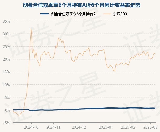 证券之星消息,3月7日,创金合信双季享6个月持有A最新单位净值为1.1625元,累计净值为1.1625元,较前一交易日下跌0.04%。历史数据显示该基金近1个月下跌0.19%,近3个月上涨0.22%,近6个月上涨0.64%,近1年上涨2.4%。该基金近6个月的累计收益率走势如下图: