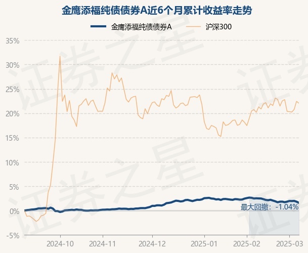 证券之星消息,3月7日,金鹰添福纯债债券A最新单位净值为1.0216元,累计净值为1.0594元,较前一交易日下跌0.22%。历史数据显示该基金近1个月下跌1.0%,近3个月上涨0.55%,近6个月上涨1.6%,近1年上涨3.38%。该基金近6个月的累计收益率走势如下图:
