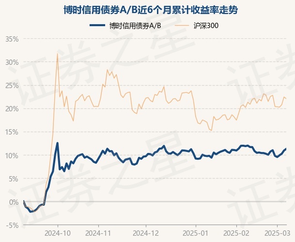 博时信用债券A/B为债券型-混合二级基金,根据最新一期基金季报显示,该基金资产配置:股票占净值比19.66%,债券占净值比87.96%,现金占净值比1.74%。基金十大重仓股如下:
