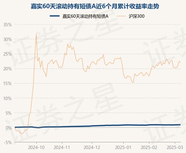 证券之星消息,3月7日,嘉实60天滚动持有短债A最新单位净值为1.104元,累计净值为1.104元,较前一交易日上涨0.0%。历史数据显示该基金近1个月上涨0.0%,近3个月上涨0.32%,近6个月上涨0.87%,近1年上涨1.97%。该基金近6个月的累计收益率走势如下图: