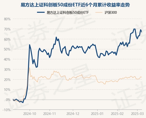 证券之星消息,3月7日,易方达上证科创板50成份ETF最新单位净值为1.1344元,累计净值为0.7948元,较前一交易日下跌1.27%。历史数据显示该基金近1个月上涨8.71%,近3个月上涨9.19%,近6个月上涨66.92%,近1年上涨39.5%。该基金近6个月的累计收益率走势如下图: