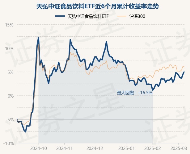 证券之星消息,3月7日,天弘中证食品饮料ETF最新单位净值为0.7115元,累计净值为0.7115元,较前一交易日上涨0.88%。历史数据显示该基金近1个月上涨4.93%,近3个月下跌4.24%,近6个月上涨20.1%,近1年下跌2.48%。该基金近6个月的累计收益率走势如下图: