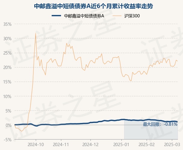 中邮鑫溢中短债债券A为债券型-中短债基金,根据最新一期基金季报显示,该基金资产配置:无股票类资产,债券占净值比99.81%,现金占净值比0.36%。