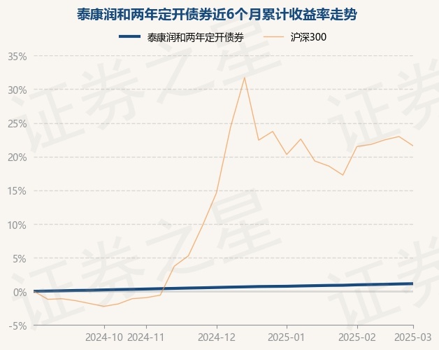 证券之星消息,3月7日,泰康润和两年定开债券最新单位净值为1.0277元,累计净值为1.1391元,较前一交易日上涨0.04%。历史数据显示该基金近1个月上涨0.17%,近3个月上涨0.56%,近6个月上涨1.13%,近1年上涨2.34%。该基金近6个月的累计收益率走势如下图: