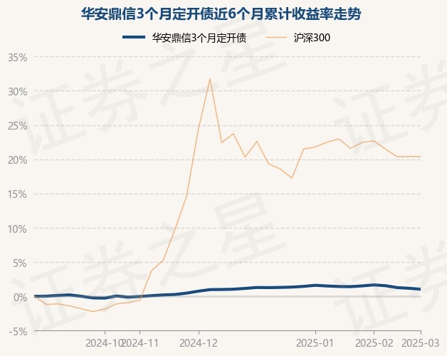 证券之星消息,3月7日,华安鼎信3个月定开债最新单位净值为1.0495元,累计净值为1.2215元,较前一交易日下跌0.13%。历史数据显示该基金近1个月下跌0.62%,近3个月上涨0.29%,近6个月上涨0.96%,近1年上涨2.95%。该基金近6个月的累计收益率走势如下图: