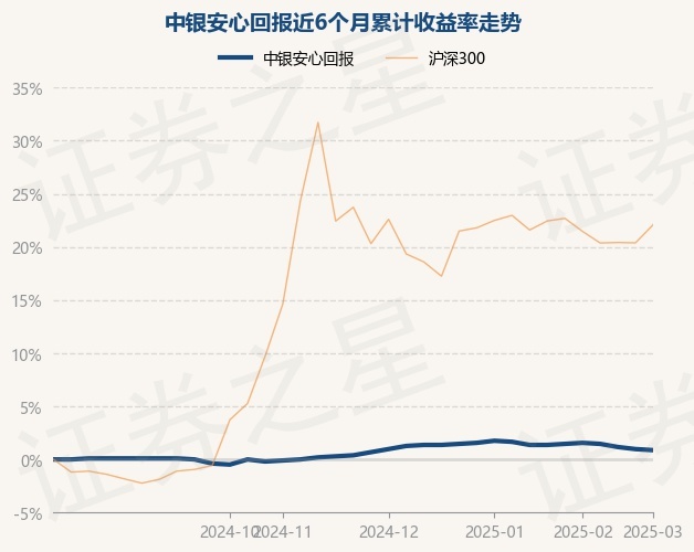 证券之星消息,3月7日,中银安心回报最新单位净值为1.029元,累计净值为1.432元,较前一交易日下跌0.1%。历史数据显示该基金近1个月下跌0.68%,近3个月下跌0.1%,近6个月上涨0.87%,近1年上涨3.44%。该基金近6个月的累计收益率走势如下图: