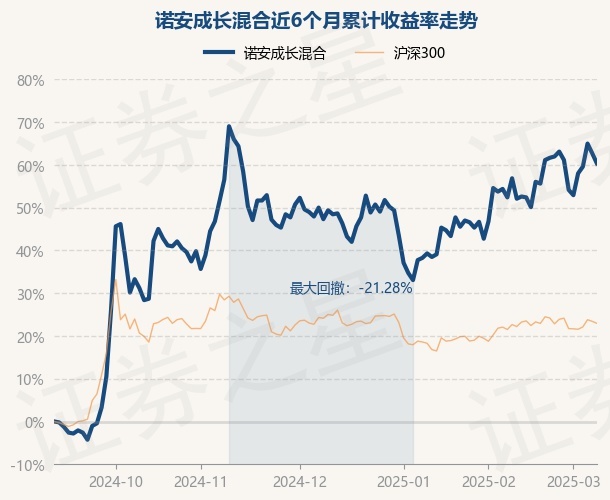 证券之星消息,3月10日,诺安成长混合最新单位净值为1.542元,累计净值为1.987元,较前一交易日下跌1.47%。历史数据显示该基金近1个月上涨3.84%,近3个月上涨7.31%,近6个月上涨60.29%,近1年上涨35.26%。该基金近6个月的累计收益率走势如下图: