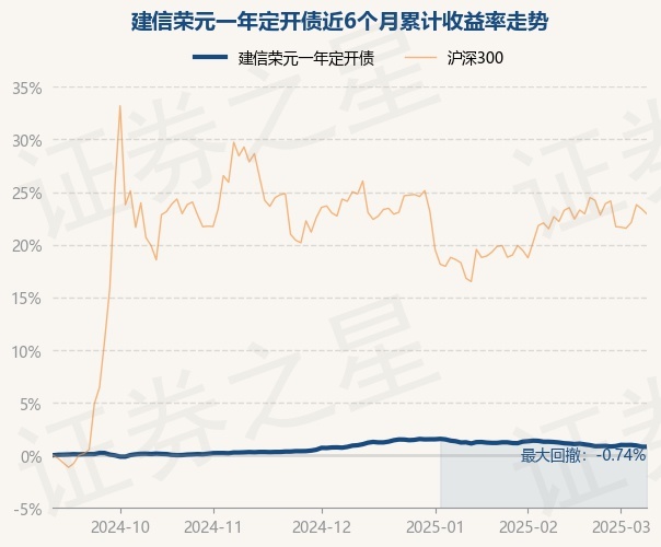 证券之星消息,3月10日,建信荣元一年定开债最新单位净值为1.0885元,累计净值为1.1335元,较前一交易日下跌0.01%。历史数据显示该基金近1个月下跌0.48%,近3个月下跌0.11%,近6个月上涨0.81%,近1年上涨2.56%。该基金近6个月的累计收益率走势如下图: