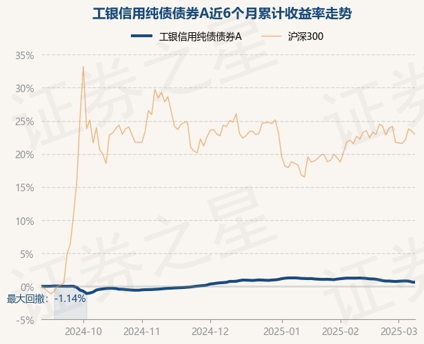 证券之星消息,3月10日,工银信用纯债债券A最新单位净值为1.4683元,累计净值为1.5093元,较前一交易日下跌0.05%。历史数据显示该基金近1个月下跌0.63%,近3个月下跌0.14%,近6个月上涨0.6%,近1年上涨2.91%。该基金近6个月的累计收益率走势如下图: