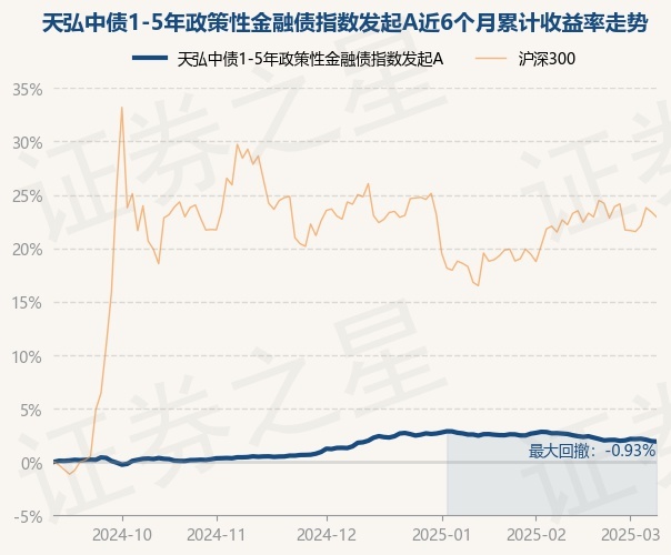 证券之星消息,3月10日,天弘中债1-5年政策性金融债指数发起A最新单位净值为1.055元,累计净值为1.1368元,较前一交易日下跌0.04%。历史数据显示该基金近1个月下跌0.75%,近3个月上涨0.11%,近6个月上涨1.91%,近1年上涨4.44%。该基金近6个月的累计收益率走势如下图: