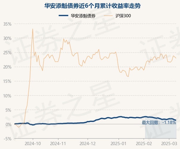 证券之星消息,3月10日,华安添魁债券最新单位净值为1.0492元,累计净值为1.0896元,较前一交易日下跌0.06%。历史数据显示该基金近1个月下跌1.0%,近3个月下跌0.03%,近6个月上涨1.36%,近1年上涨3.63%。该基金近6个月的累计收益率走势如下图: